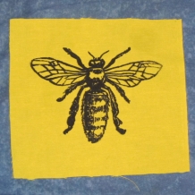 • Honey Bee Patch - Black Ink on Yellow Fabric - Silkscreen Screenprint Drawing Image of Insect Bug Critter, Punk Animal Patch