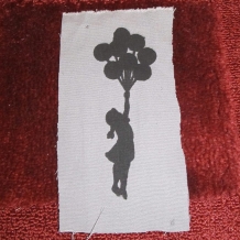 • Punk Patch - Balloon Girl Sillouhette - Inspired by Banksy Street Art - Black Ink on Grey Canvas